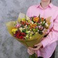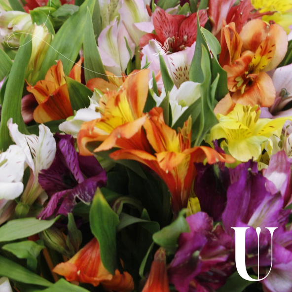 Монобукет из 15 разноцветных альстромерий микс в матовой пленке с атласной лентой - это изысканный и стильный подарок, который станет незабываемым сюрпризом для любого торжества или особого случая. Альстромерии в составе букета известны своей стойкостью и долгим сроком жизни, а также визуальной легкостью, свежестью и нежностью.