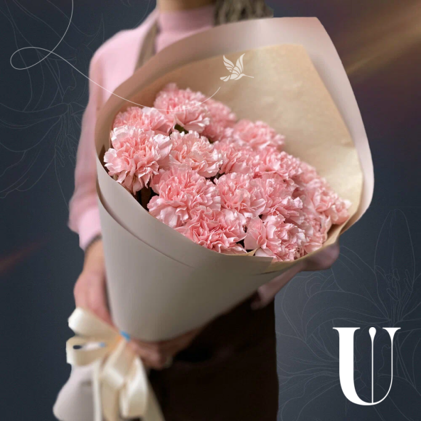 Выбирая монобукет из 15 розовых гвоздик, вы дарите знак благодарности и нежности, который, несомненно, будет оценен получателем.